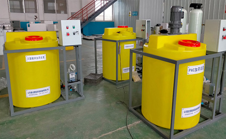 凈水加藥裝置主要為PAC等絮凝的投加。加藥過程可手動操作,也可通過PC機(jī)、磁翻板液位計、PH計、行程控制器、變頻器等各種電器、儀表,使加藥裝置成為機(jī)電一體化產(chǎn)品,實現(xiàn)自動控制。